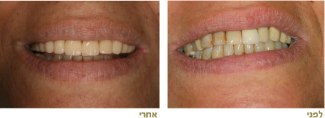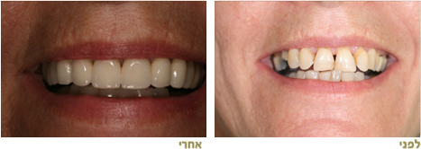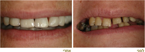 השיקום כולל גשרים על שיניים קיימות (לאחר ביצוע טיפול שורש ומבנה) וכתרים על שתלים.