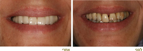 במקרה זה ניתן לראות את השפה העליונה היפה והחושנית כאשר השיקום נותן תמיכה טובה.