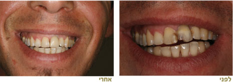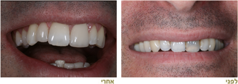 שני הכתרים שבשיניים הקדמיות הוחלפו ע"י כתרי זירקוניה.